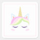Pegatina mostrado en una forma cuadrada pequeña con una tira de unicornio adorable. Personalizar o compra como está. Imprimir imagen de archivo Freepik.com