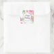 El pequeño pegatina cuadrado de feliz cumpleaños se muestra con una impresión floral rosa bonito. Personalizar o compra como está.
