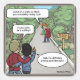 Estos pegatinas humorísticos muestran a una pareja haciendo senderismo junto con un amigo, que está muy emocionado de mostrarles algo realmente genial. El entusiasmo de los excursionistas le ha llevado de nuevo hasta el punto de preguntarse si está alardeando. Entonces se dan cuenta de que todos los signos señalan que está alardeando... ¡y tiene sentido por qué!
