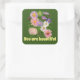 Pegatina Cuadrada Pegatinas, hermosas flores verdes rosas