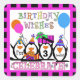 Los pegatinas de cumpleaños personalizados del Fiesta Pingüino tienen cuatro pingüinos, globos, globos de cumpleaños, colores brillantes y un área donde puedes agregar la edad de tu hijo.