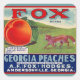 Pegatinas con publicidad de Melocotones de la marca Fox Vintage Georgia Peaches ~ Pegatinas de publicidad ventilado coloridos para la reserva de recortes, decoración de fiestas, artesanía, etiquetado de regalos y necesidades de papelería! Hay varias formas de pegatina disponibles para diferentes usos y para crear diferentes vistas de estilos. ¡Disfruta La Vida Y Gracias Por Pararse!
