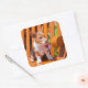 Pegatina Cuadrada Pembroke Welsh Corgi cachorro sentado en el banco