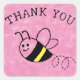 Pegatina Cuadrada Pequeña Abeja volando Baby Shower rosa