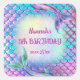 Pegatina Cuadrada pequeño patrón de sirena Cumpleaños