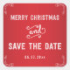 Pequeño cuadrado rojo y blanco Guardar las etiquetas de Navidad de fecha con texto de personalizable - puede agregar su fecha boda