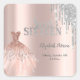 Elegante vestido azul y purpurina plateado gotea sobre un rosa de fondo dorado.