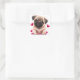 Pegatina Cuadrada Perrito Pug Adorable Día de San Valentín