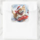 Pegatina Cuadrada Perro Akita con manchas deja que nieve Navidades