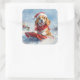 Pegatina Cuadrada Perro Beagle con manchas y Navidades de nieve