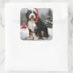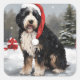 Pegatina Cuadrada Perro Bernedoodle en Navidades de Nieve