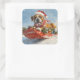 Pegatina Cuadrada Perro Boxer con manchas deja que nieve Navidades