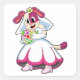 Pegatina Cuadrada Perro como novia con vestido de Boda y flores