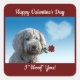 Pegatina Cuadrada Perro con Rosa Valentine