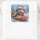 Pegatina Cuadrada Perro de Bernedoodle en la cornisa, Navidades de l