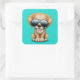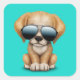 Pegatina Cuadrada Perro de Cachorro con gafas de sol