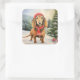 Pegatina Cuadrada Perro de Dachshund en Navidades de nieve