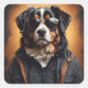 Pegatina Cuadrada Perro De Montaña De Berna Con Chaqueta Y Gafas De