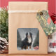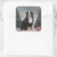 Pegatina Cuadrada Perro de montaña de Berna en Navidades de nieve
