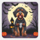Pegatina Cuadrada Perro feliz en el tema de Halloween