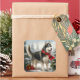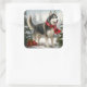 Pegatina Cuadrada Perro Husky Siberiano en Navidades de nieve