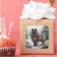 Pegatina Cuadrada Perro Keeshond en Navidades de nieve