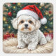 Pegatina Cuadrada Perro maltés navidad en una almohada azul