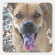 Pegatina Cuadrada Perro marrón feliz con lengua manchada