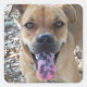 Pegatina Cuadrada Perro marrón feliz con lengua manchada