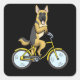 Pegatina Cuadrada Perro pastor alemán en bicicleta