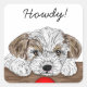 Pegatina Cuadrada Perro perrito lindo dibujado a mano suave Howdy