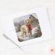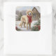 Pegatina Cuadrada Perro recuperador de oro en Navidades de nieve