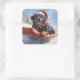 Pegatina Cuadrada Perro Rottweiler con mangas y Navidades que nieva