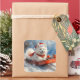 Pegatina Cuadrada Perro Samoyen en el manto Navidades que la nieve