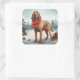 Pegatina Cuadrada Perro sangriento en Navidades de nieve