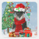 Pegatina Cuadrada Perro Schnauzer en Navidades de nieve