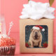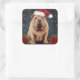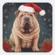 Pegatina Cuadrada Perro Shar Pei en Navidades de nieve