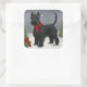 Pegatina Cuadrada Perro terrorífico escocés en Navidades de nieve