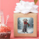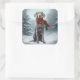 Pegatina Cuadrada Perro Weimaraner en Navidades de nieve