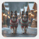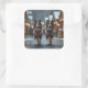 Pegatina Cuadrada Perros Collie Ásperos Navidad Nieve Fiesta