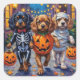 Los adorables españoles tibetanos vestidos con juguetones disfraces de Halloween llevan baldes de calabaza mientras truco o truco bajo el cielo iluminado por la luna. Este diseño festivo resalta el abrigo sedoso de la raza, los ojos expresivos y la personalidad alegre, capturando a la perfección la atmósfera espeluznante y divertida de la noche de Halloween. Una deliciosa celebración para los amantes del español tibetano, entusiastas del perro y fans de Halloween.