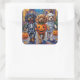 Pegatina Cuadrada Perros Españoles Tibetanos En Disfraces De Hallowe