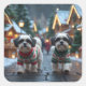 Pegatina Cuadrada Perros Malti Tzu Navidad Nieve Fiesta
