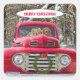Pegatina Cuadrada Perros navideños felices en camión rojo retro