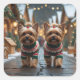 Pegatina Cuadrada Perros Yorkipoo Navidad Nieve Fiesta