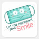 Una máscara verde, cortés y divertida, sonriendo con las palabras "Déjame representar tu sonrisa". Personalizable y diseño editable. Usa tus propias palabras, el color de fondo preferido e incluso tu propia elección de fuentes disponibles en la tienda. Disfrute de un ambiente agradable y kawaii con un ilustracion personalizado.