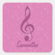 Pegatina Cuadrada Personalizable Girly Pink Clef y notas musicales