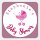 Pegatina Cuadrada Personalización de Baby Shower de transporte rosa
