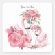 Pegatina Cuadrada Personalizado blanco de color de agua Flamingo