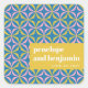 Personalizado Boda de tipografía retro azul y amarilla moderna Pegatinas de plaza